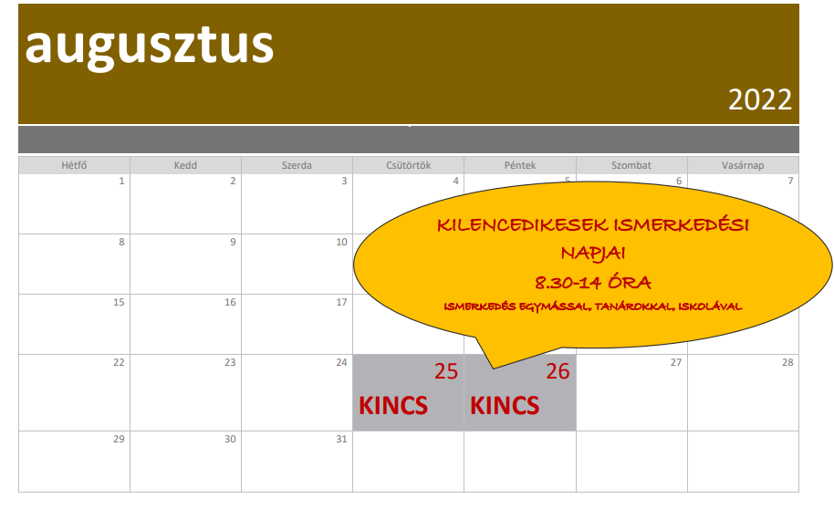 Tanév rendje 2022-23